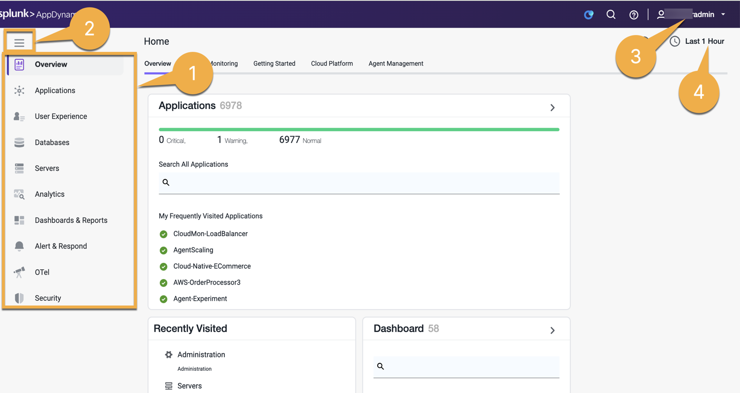 The precise controls and features available to you depend on your user account permissions and product module licenses. For example, you can have additional controls in application monitoring screens with an Analytics license. See Manage Custom Roles for Splunk AppDynamics.